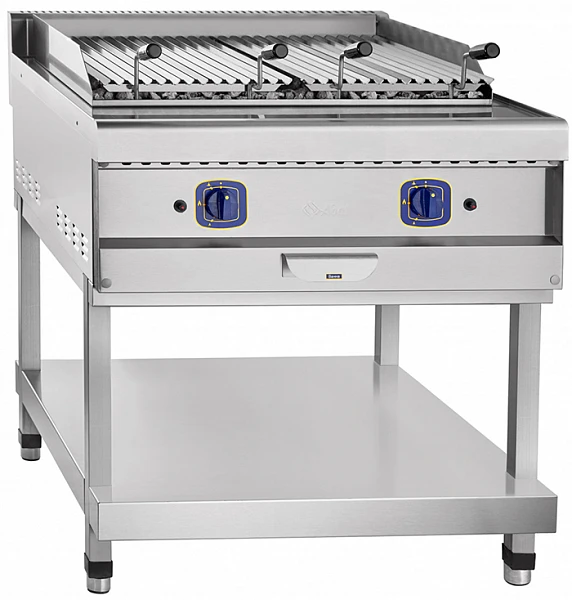 В лава гриле ГЛК-90П за основу взят принцип приготовления пищи на углях, но вместо углей используется настоящая вулканическая лава, которая равномерно распределяет жар и впитывает жир. Благодаря мощным газовым горелкам вулканический камень быстро аккумулирует тепло и далее работает как раскаленные угли. Эта особенность освобождает от необходимости постоянно подсыпать уголь. Стекающий жир, попадая на раскаленные камни, образует ароматный дымок, который придает мясу особый вкус "барбекю".
