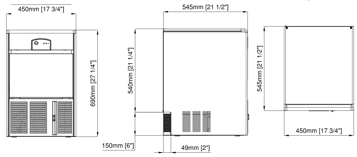 Он прост в установке, отверстие для слива воды поднято на высоту 60 мм, подводка электричества и воды расположена в боковой части оборудования.