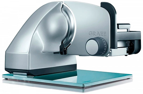 Ломтерезка бытовая GRAEF Master M90 серебристая предназначена для нарезки мяса, сыра, колбасных изделий и других продуктов питания на ровные и равные ломтики.