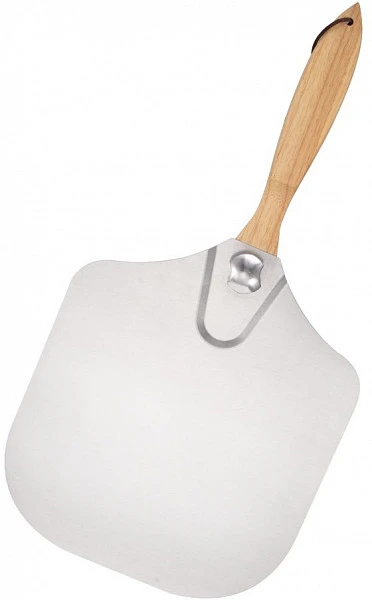 Лопата для пиццы из алюминия прямоугольная с поворотной деревянной ручкой.