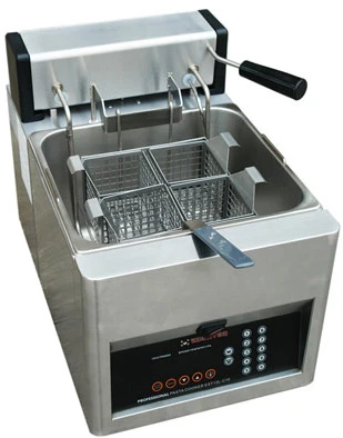 Настольная макароноварка с автоматическим опусканием и подъемом корзин позволяет минимизировать влияние человеческого фактора на качество готового продукта.