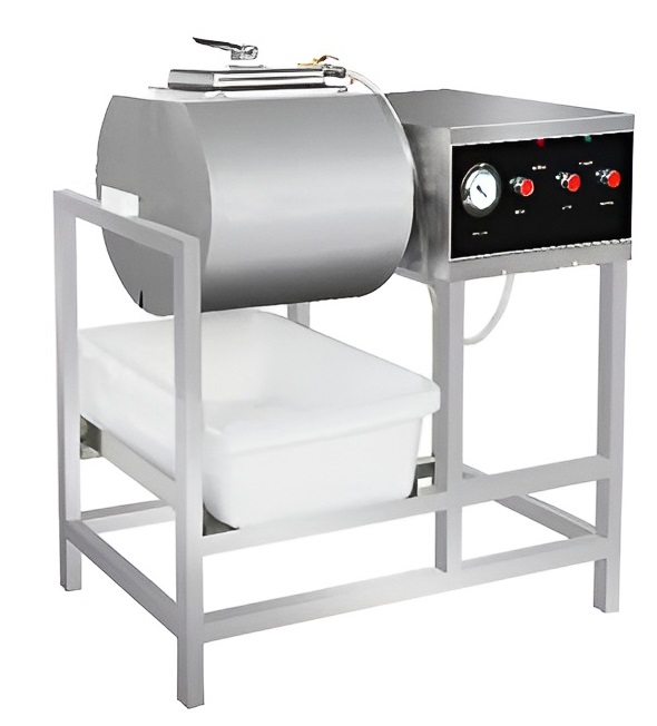 Маринатор мяса Hualian Machinery MR-40 вакуумный необходим для повышения качества и вкуса продукции, обеспечивая равномерное распределение маринада по всей поверхности продукта. Он подходит для обработки различных видов мяса, рыбы и овощей, что делает его универсальным решением для широкого спектра производственных задач. Благодаря интуитивно понятной панели управления, маринатор позволяет легко настраивать рабочие параметры, обеспечивая гибкость и точность в процессе. Высокий уровень гигиеничности и простота очистки конструкции предотвращают перекрестное загрязнение, а эффективное использование маринада и сокращение времени обработки помогают снизить производственные затраты и повысить рентабельность.