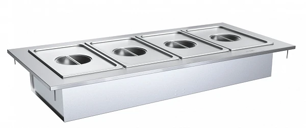 Мармит предназначен для размещения в нем 4-х гастроемкостей GN 1/1 максимальной глубиной 150 мм.