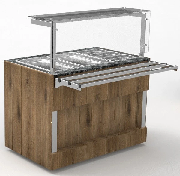 Мармит имеет светодиодную подсветку в нише фасадной части и подсветку рабочей зоны.