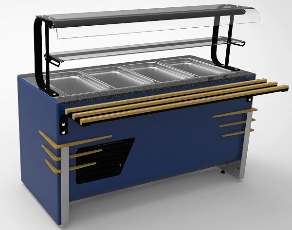 Мармит имеет светодиодную подсветку в нише фасадной части и подсветку рабочей зоны.
