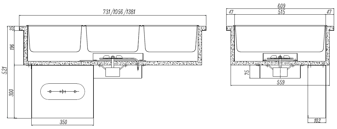 Мармиты поставляются с встроенными направляющими для гастроемкостей форматом GN1/1 глубиной до 150 мм.