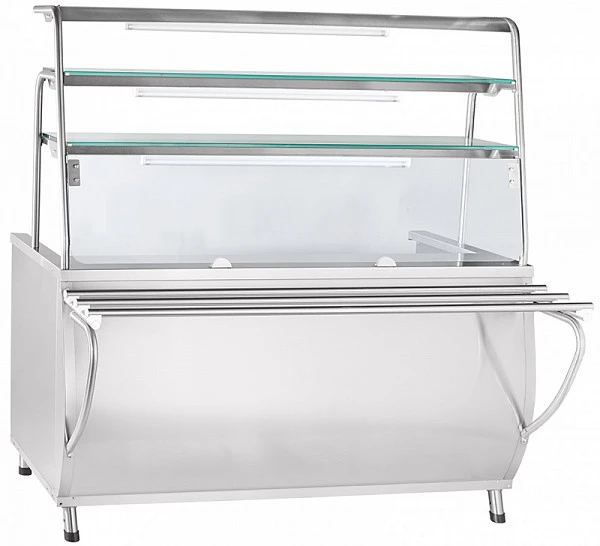 Каждый из трех ярусов полки над мармитом оснащен лампой подсветки