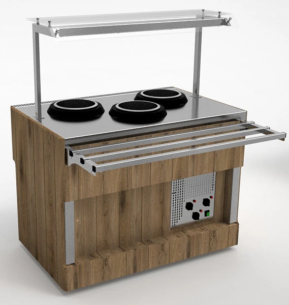 Мармит имеет светодиодную подсветку в нише фасадной части и подсветку рабочей зоны.