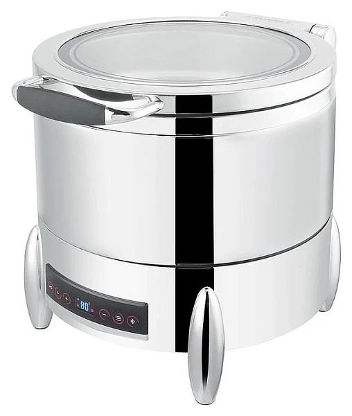 Мармит первых блюд Sunnex 10 л Roma W20-28221S-CBU предназначен для постоянного подогрева первых блюд и поддержания их оптимальной температуры на предприятиях общественного питания и торговли. Модель круглого сечения оснащена откидной крышкой с рукояткой и фронтальной панелью управления с цифровым дисплеем. Корпус выполнен из высококачественной нержавеющей стали с серебристой поверхностью, поддон – из нержавеющей стали 18/8, остекление – из закаленного стекла, панель управления черного цвета.