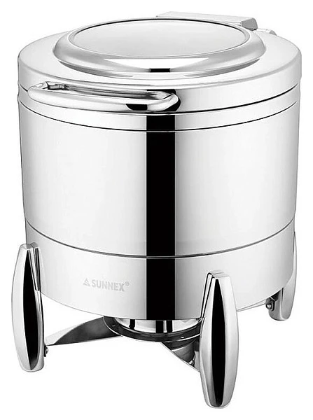 Мармит первых блюд Sunnex 10 л W10-2011 предназначен для постоянного подогрева первых блюд и поддержания их оптимальной температуры на предприятиях общественного питания и торговли. Модель круглого сечения оснащена откидной крышкой с рукояткой. Корпус выполнен из высококачественной нержавеющей стали с серебристой поверхностью, остекление – из закаленного стекла.