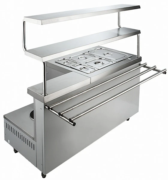Линия ШКОЛЬНИК спроектирована специально для организаций бюджетной сферы, в частности – учебных заведений. Функционально линия отвечает всем современным требованиям организации общественного питания. Столешницы, полки и направляющие изготовлены из нержавеющей стали AISI 304. Передние и боковые панели из оцинкованной стали, окрашенной серой эпоксиполиэфирной краской. Линия включает все необходимые для рабочей расстановки элементы: прилавки-витрины охлаждаемые (закрытый и открытый), прилавки нейтральные, прилавок для столовых приборов и подносов, кассовая кабина и мармиты (первых, вторых блюд и универсальный). Элементы линии доступны в двух вариантах длины: 1120 и 1500 мм.