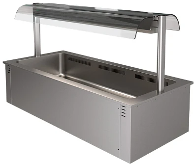 Мармит оснащен верхней стойкой, что позволяет использовать ее как дополнительный элемент линии раздачи, увеличив полезную площадь выкладки.