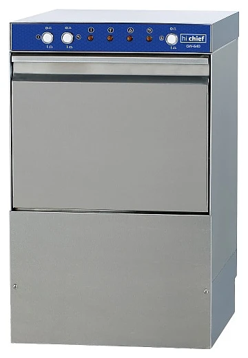 Машина стаканомоечная Hi Chief GW-640+DR+DET+RA с помпой и дозаторами используется для мойки тарелок, стаканов, чашек и другой посуды с применением жидких моющих и ополаскивающих средств на предприятиях общественного питания и торговли.