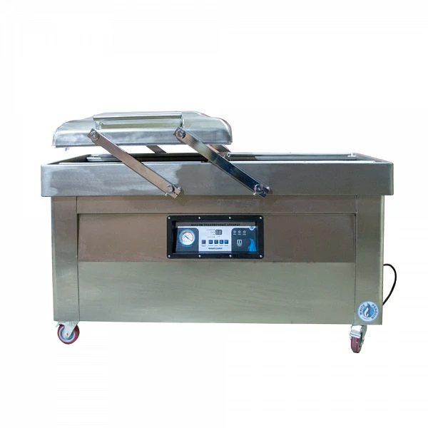 Вакуумная машина оснащена двумя объемными камерами с двумя сварочными планками в каждой, позволяющими значительно увеличить производительность аппарата.