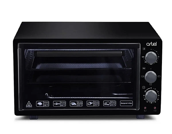 Мини-печь ARTEL MD-3216 LUX черно-черный объемом 32 л поможет порадовать близких запеченными блюдами, вкусными пирогами и тортами везде, где есть доступ к электросети. Она относительно легкая и компактная, простая в управлении, а ее возможностей хватит для чего угодно. Максимальная температура 300° – более, чем достаточно даже для хлеба, минимальная – до 40°, подойдет для сушки овощей, фруктов и грибов. Все остальные блюда укладываются в промежуточные значения. Размера Artel MD 3216 будет достаточно для размещения целой курицы или гуся, а 2 поддонов хватит для очень большого количества пирожков и пиццы. Печь поддерживает 3 режима: нижний, верхний или общий подогрев. Это позволяет подобрать подходящий для каждого блюда. Изнутри камера покрыта легкой в уходе качественной керамической эмалью.