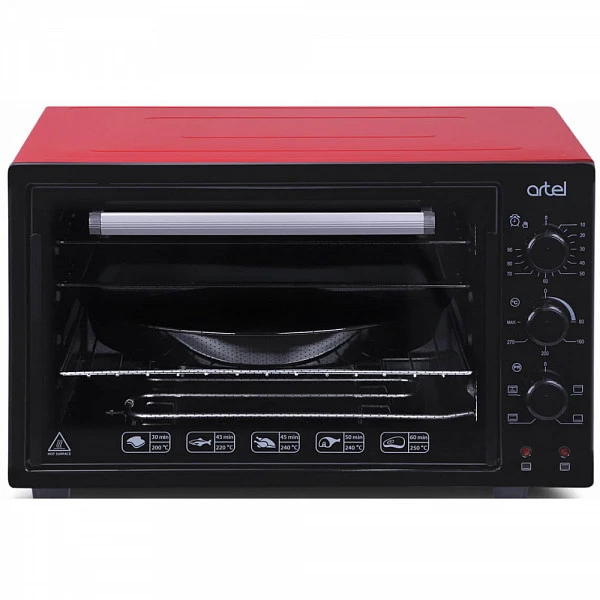 Мини-печь ARTEL MD-3216 LUX черно-красный объемом 32 л поможет порадовать близких запеченными блюдами, вкусными пирогами и тортами везде, где есть доступ к электросети. Она относительно легкая и компактная, простая в управлении, а ее возможностей хватит для чего угодно. Максимальная температура 300° – более, чем достаточно даже для хлеба, минимальная – до 40°, подойдет для сушки овощей, фруктов и грибов. Все остальные блюда укладываются в промежуточные значения. Размера Artel MD 3216 будет достаточно для размещения целой курицы или гуся, а 2 поддонов хватит для очень большого количества пирожков и пиццы. Печь поддерживает 3 режима: нижний, верхний или общий подогрев. Это позволяет подобрать подходящий для каждого блюда. Изнутри камера покрыта легкой в уходе качественной керамической эмалью.