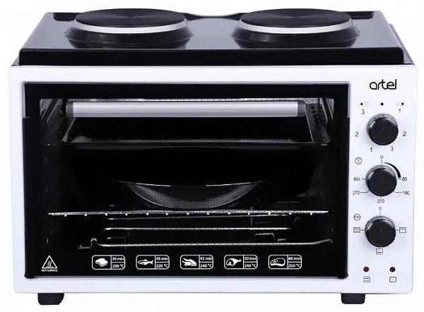Мини-печь ARTEL MD-3614 белый объемом 36 л сможет не только пожарить стейк, приготовить мясо или рыбу, но и испечь нежнейшие булочки и печенье. Мини-печь ARTEL MD 3614 белый выручит также, если Вы захотите разогреть уже готовую порцию. Мини-печь имеет механическое управление предельно простое в освоении. В конце процесса готовки у мини-печей Artel срабатывает звуковой таймер, оповещающий о том, что блюдо готово и можно подавать на стол. Мини-печи Artel оснащены электрическими конфорками. Теперь вы можете не только жарить, печь или тушить, но и одновременно готовить различные вкусные супы