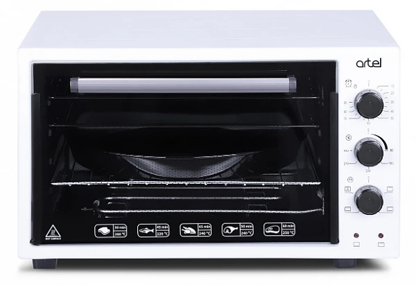 Мини-печь ARTEL MD-3618 LUX белый - имеет специальное внутреннее покрытие, на котором не остается никаких царапин даже при продолжительных высоких температурах. Благодаря гладкой поверхности, чистить мини-печь Artel – одно удовольствие. Лампа освещения является дополнительным удобством, позволяющим в полной мере оценить, приготовилось ли ваше блюдо. Благодаря лампе, установленной в мини-печи, у вас никогда не возникнет неудобств даже в условиях низкой освещенности. Мини-печи с конвекцией готовят блюда и выпечку быстро и равномерно за счёт распределения горячего воздуха вентилятором. В конце процесса готовки у мини-печей Artel срабатывает звуковой таймер, оповещающий о том, что блюдо готово и можно подавать на стол.
