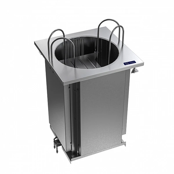 В верхней части модуля расположены ограничители из нержавеющего прутка, надежно фиксирующие стопку тарелок одного диаметра.