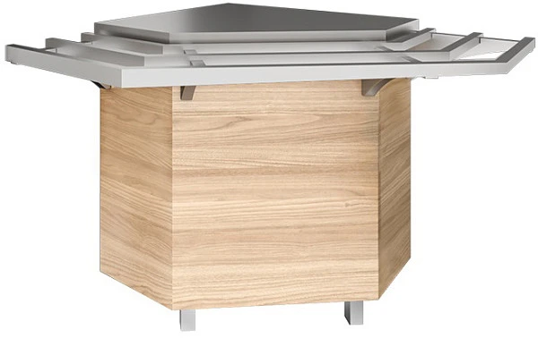 Модуль поворотный внешний Astropit АЛРУП-90Н служит в качестве нейтрального стола, одновременно позволяя поворачивать технологические линии раздачи под углом 90 градусов, не прерывая линию направляющих для подносов.