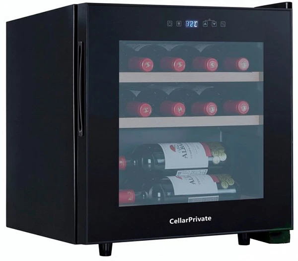 Винный шкаф монотемпературный Cellar Private CP017 используется для охлаждения 14 бутылок вина, которые размещаются за дверцей из затемненного стекла.