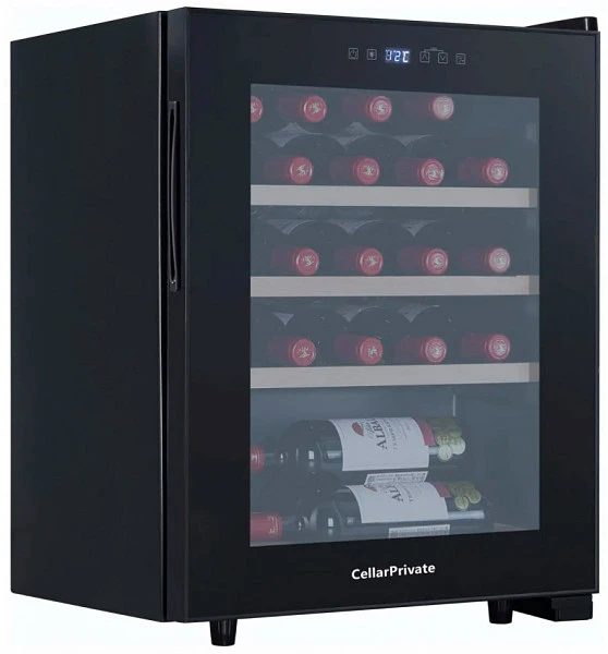 Винный шкаф монотемпературный Cellar Private CP023 используется для охлаждения 23 бутылок вина, которые размещаются за дверцей из затемненного стекла.