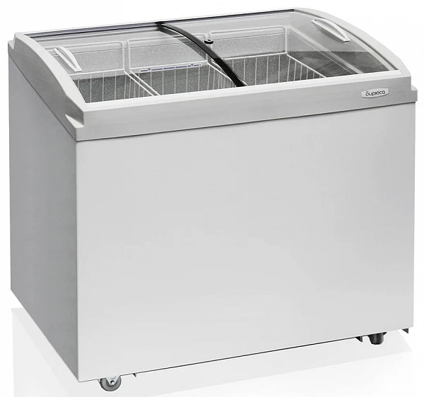 Морозильный ларь Бирюса 260VCZQ с гнутыми стеклянными створками предназначен для хранения, демонстрации и продажи замороженных продуктов в подсобных помещениях и залах на предприятиях торговли и общественного питания.