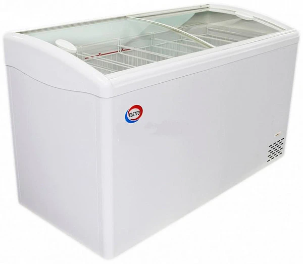 Морозильный ларь Eletto ЛВН 400 Г R290 (СF 400 CE R290) серый с гнутыми стеклянными створками предназначен для хранения, демонстрации и продажи замороженных продуктов в подсобных помещениях и залах на предприятиях торговли и общественного питания.