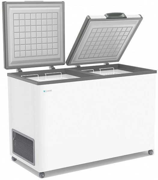 Морозильный ларь Frostor F 400SD с двойной глухой металлической крышкой. Двойная крышка обеспечивает простой доступ к нужной части ларя, сокращая потребление электроэнергии на поддержание температуры.