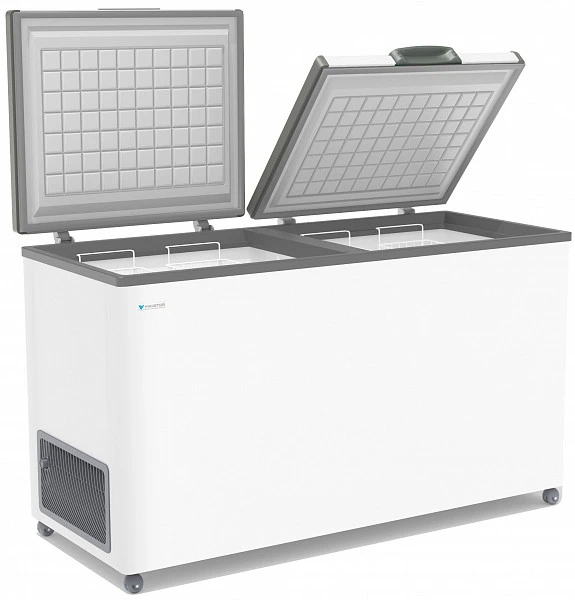 Морозильный ларь Frostor F 500SD с двойной глухой металлической крышкой. Двойная крышка обеспечивает простой доступ к нужной части ларя, сокращая потребление электроэнергии на поддержание температуры.