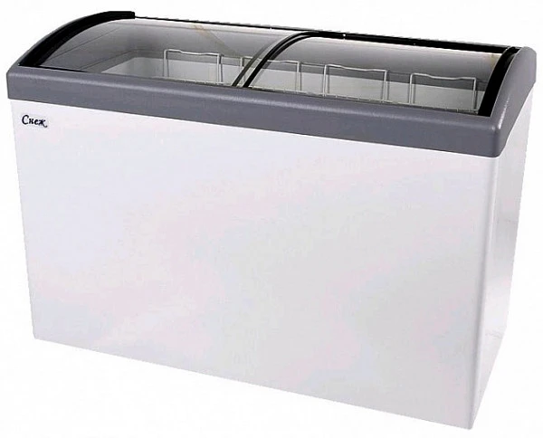 Ларь с выпуклой раздвижной стеклянной крышкой обеспечивает наглядность и легкий доступ к товарам. Гнутое стекло придает более привлекательный дизайн, стимулирующий совершить покупку. Поэтому такой морозильный ларь еще называют "импульсным".
