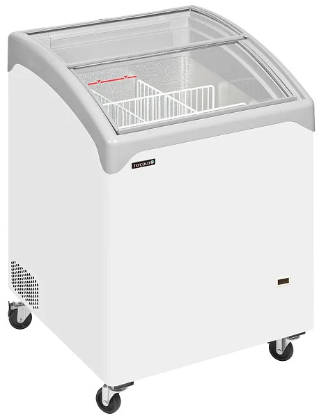 Морозильный ларь Tefcold NIC101SCEB со стеклянной гнутой крышкой предназначен для заморозки и хранения полуфабрикатов и скоропортящихся продуктов. Модель отлично подойдет для продажи мороженого. Выпуклая наклонная раздвижная крышка обеспечивает наилучший обзор продуктов. Специальные разделители повышают удобство использования оборудования. Для комфортного и быстрого перемещения ларя в конструкции предусмотрены колеса.