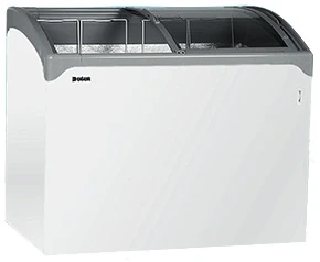 Низкотемпературный ларь с гнутым наклонным стеклом и пластиковой рамкой D 300 СEBN предназначен для хранения продуктов при температурном режиме -12°…-22°.