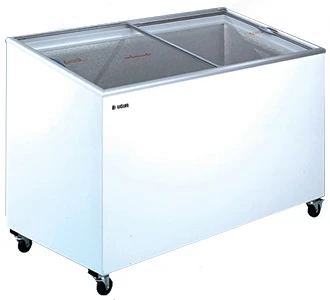 Низкотемпературный ларь с прямым наклонным стеклом D 400 СE предназначен для хранения продуктов при температурном режиме -12°…-22°.