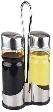 Набор для специй Viatto из 3 предметов: бутылочка для масла 140 мл, бутылочка для уксуса 140 мл, подставка. Бутылочки изготовлены из стекла.