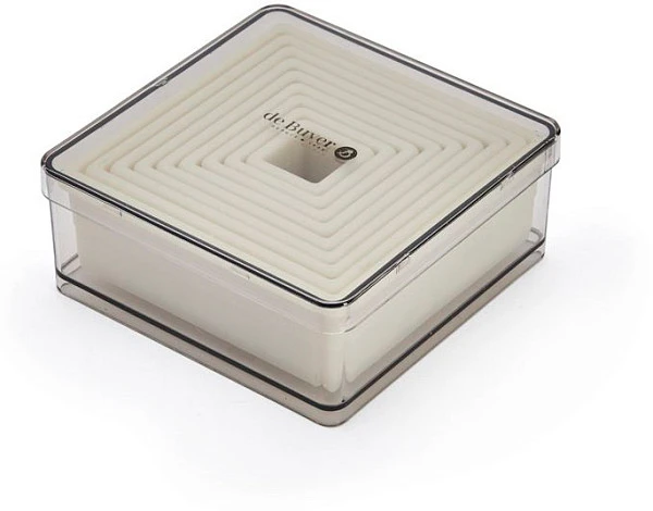 Набор резаков из 9 квадратных форм De Buyer 4304.30 используется на предприятиях общественного питания и торговли, в частных домах и квартирах для нарезки изделий нужного диаметра, для холодной формовки и сборки тортов и прочих десертов.