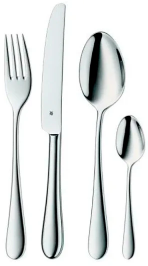 Набор столовых приборов WMF 12.1900.0024 Signum, 24 предмета способствует созданию интимной атмосферы за столом. Любой тип столового фарфора привлекательно и гармонично дополняется приборами из коллекции Signum, как во время завтрака, обеда или ужина со множеством перемен блюд. Дизайн предметов представляет собой соединение традиционно закруглённых ручек с отлично сбалансированными, ясными линями контура. Как результат: сочетание простого, но идеального стиля с безупречным кулинарным наслаждением.
