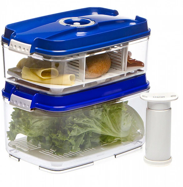 Набор вакуумных контейнеров Status VAC-REC-Bigger Blue используется для компактного хранения продуктов, позволяя экономить пространство.