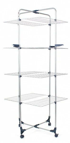 Основа конструкции — стальные трубки, между которыми располагаются полочки для развески белья. Полочки сделаны из металлических прутиков, которые не деформируются и не прогибаются под весом мокрой одежды.
