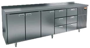 Охлаждаемый стол Hicold GN 11133 BR3 TN состоит из рабочей поверхности, на которой можно раскатывать тесто и обрабатывать ингредиенты для приготовления блюд, и камеры, предназначенной для охлаждения и кратковременного хранения скоропортящихся продуктов и напитков.