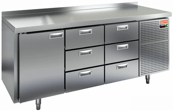 Охлаждаемый стол Hicold GN 133/TN с распашной дверцей, шестью ящиками и боковым расположением агрегата предназначен для обработки ингредиентов для приготовления блюд, а также кратковременного хранения скоропортящихся продуктов и напитков на предприятиях общественного питания и торговли.