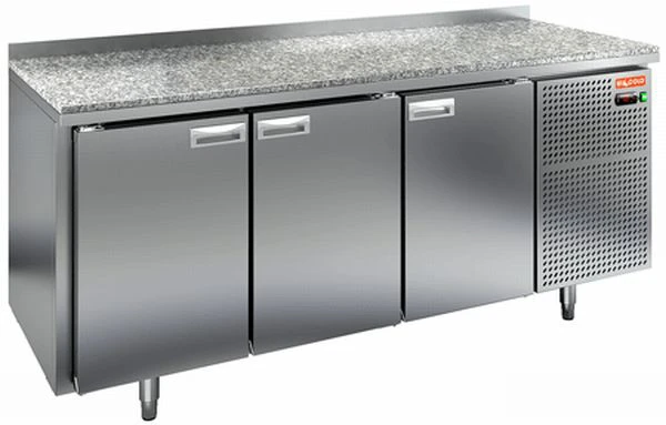 Охлаждаемый стол Hicold SN 111/TN камень с распашными дверцами, боковым расположением агрегата предназначен для обработки ингредиентов для приготовления блюд, а также кратковременного хранения скоропортящихся продуктов и напитков на предприятиях общественного питания и торговли.