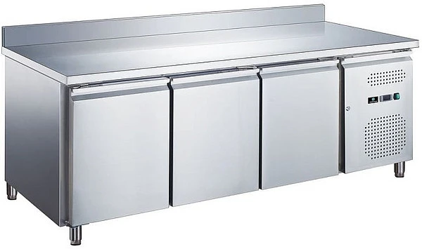 Стол с искусственным охлаждением внутреннего объема (встроенный холодильный шкаф) изготовлен из нержавеющей стали.