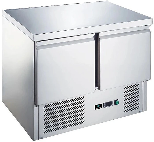 Стол с искусственным охлаждением внутреннего объема (встроенный холодильный шкаф) изготовлен из нержавеющей стали.