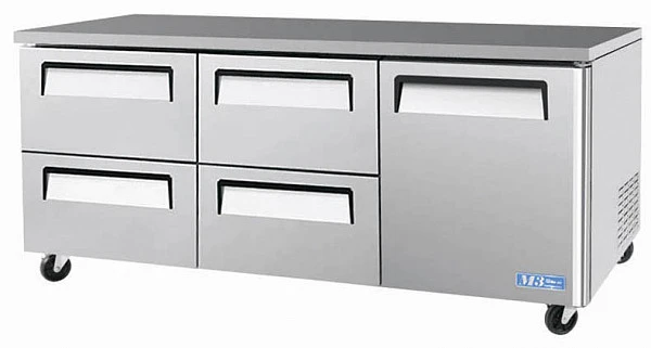 Turbo Air CMUR-72-2D-4 состоит из рабочей поверхности, на которой можно раскатывать тесто и обрабатывать ингредиенты для приготовления блюд, и камеры, предназначенной для охлаждения и кратковременного хранения скоропортящихся продуктов и напитков на предприятиях пищевой промышленности, общественного питания и торговли.