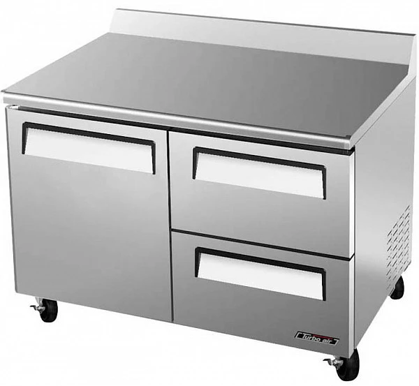 Turbo Air CMWR-48-2D-2 состоит из рабочей поверхности, на которой можно раскатывать тесто и обрабатывать ингредиенты для приготовления блюд, и камеры, предназначенной для охлаждения и кратковременного хранения скоропортящихся продуктов и напитков на предприятиях пищевой промышленности, общественного питания и торговли.