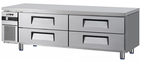 Шеф-база Turbo Air спроектирована с увеличенной и более сбалансированной (CFC free) системой охлаждения. Она включает в себя мощный испаритель и конденсатор, обладающие большой эффективностью и позволяющие добиться быстрого охлаждения продуктов.