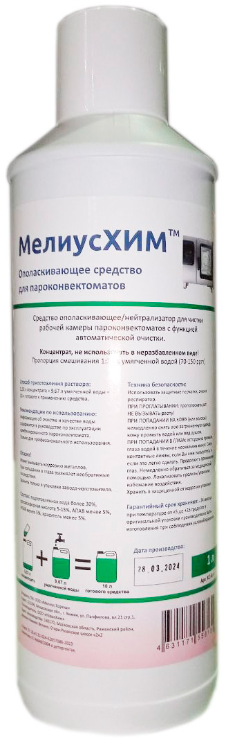 Ополаскивающее средство МелиусХим KC-R-1 предназначено ля чистки рабочей камеры пароконвектоматов с функцией автоматической очистки.