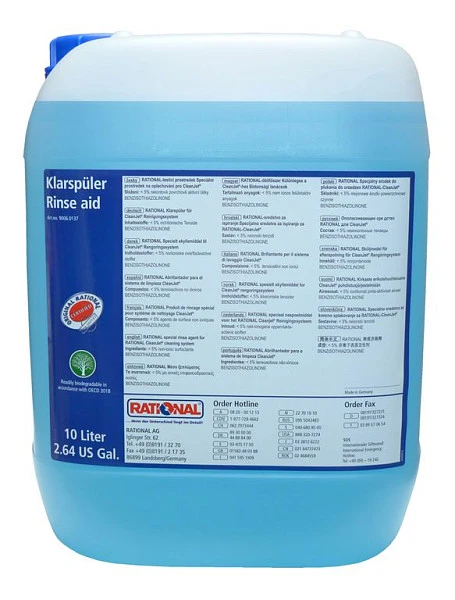 Ополаскивающее средство Rational 9006.0137 - специальное высокоэффективное средство для ополаскивания загрязнений, возникших при эксплуатации пароконвектоматов Rational CombiMaster при температуре до 200°C, средство не едкое.