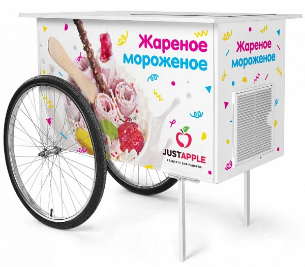 Передвижная тележка предназначена для эксплуатации совместно со встраиваемыми фризерами для жареного мороженого Just Apple.